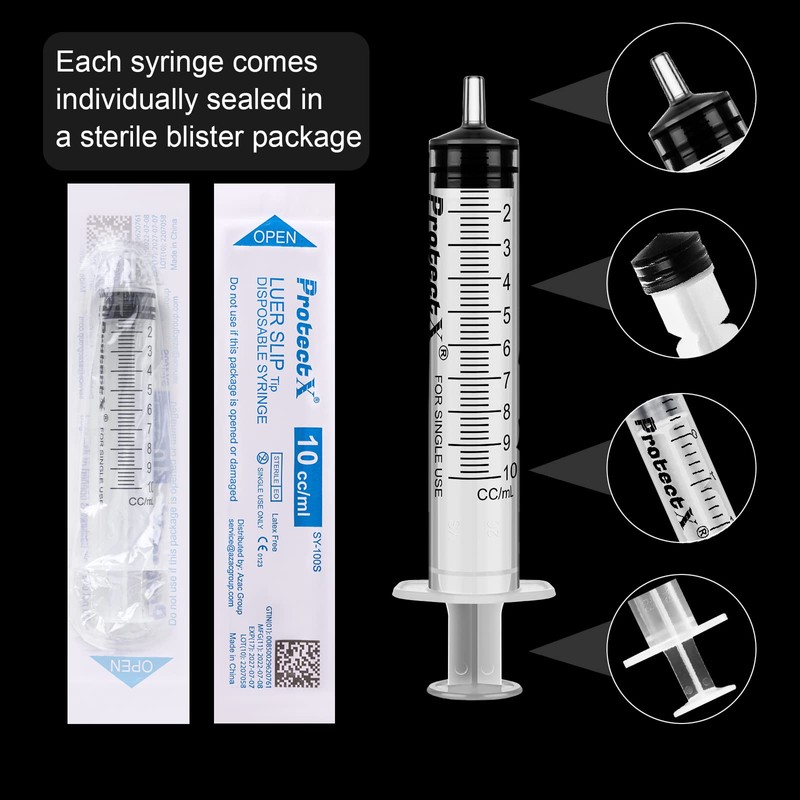 ProtectX ProtectX 10ml Disposable Luer Slip Sterile Dispenser/Syringe (No needle) Individually Sealed, Smooth and Accurate Dispensing for Science Labs, 100-Pack