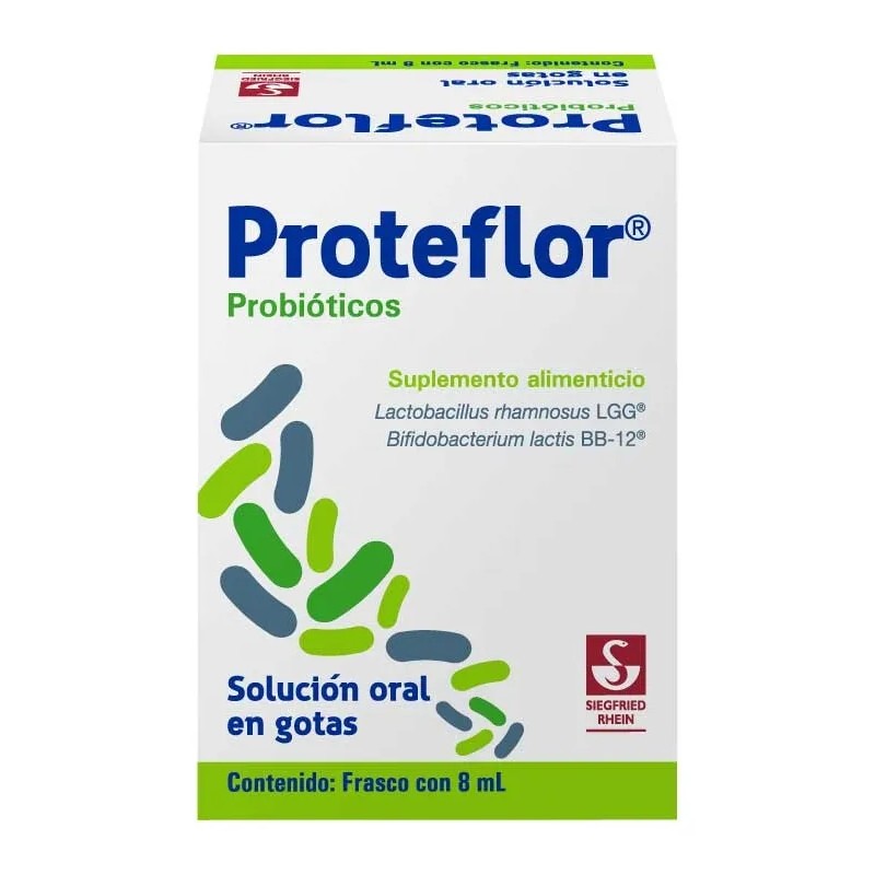 El Proteflor es un suplemento alimenticio que se presenta en un frasco con 8 ml de solución en gotas. Al igual que otros productos "Proteflor" que contienen probióticos, este formato líquido está diseñado para apoyar el bienestar digestivo, posiblemente conteniendo cepas bacterianas beneficiosas como el Bacillus coagulans. El formato en gotas lo hace particularmente versátil, facilitando su administración, especialmente en bebés o personas con dificultad para tragar cápsulas.