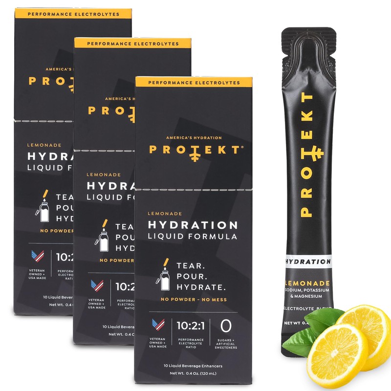 PROTEKT PROTEKT Electrolyte Packets for Recovery & Hydration | Organic & Sugar-Free Electrolytes Drinks | Works Faster Than Powder Drink | On-The-Go Liquid Hydration Drink | Lemonade, 30 Pack