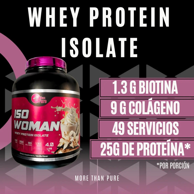 • ISO WOMAN MARCA: + THAN PURE. CONTENIDO: 4LBS. INCLUYE: SCOOP (CUCHARÓN) DE REGALO. INGREDIENTES: