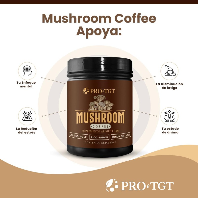 PROTGT | Mushroom Coffee | Cafe De Hongos Gourmet | Mezcla Instantánea Con Adaptogenos, Sabor Suave | Rinde 80 Tazas | Reishi, Melena de León, Chaga, Cola de Pavo | Café Energizante Y Natural Para Bienestar
