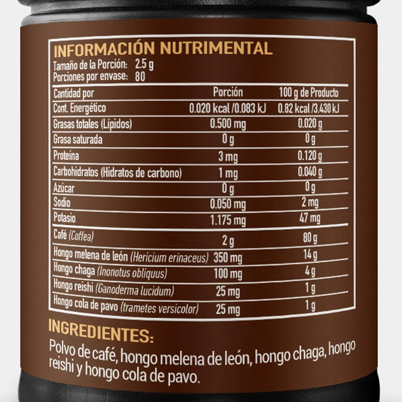 - Concentración Y Foco | Enriquecido con Melena de León, un hongo adaptógeno conocido por mejorar la claridad mental y el enfoque, ideal para empezar el día o mantener la productividad.