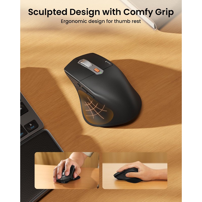 • Ergonomic Mouse: Wireless ergonomic mouse with thumb rest helps prevent RSI symptoms and promotes greater comfort than traditional mouse. 3 DPI levels (800/1300/2000 DPI) for easy cursor sensitivity adjustment.
