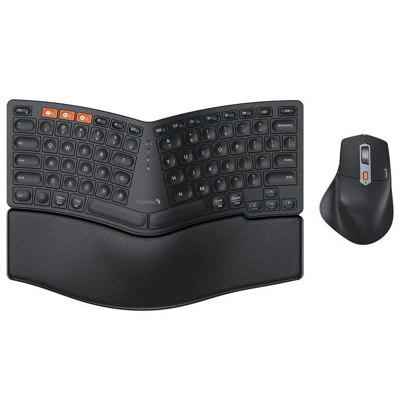 ProtoArc Bluetooth Ergonomic Keyboard Mouse, EKM04 Mini Compact Wireless Ergo Keyboard Mouse Combo, Split Design, Wrist Rest, Multi-Device, Rechargeable, for Windows/Mac - Black