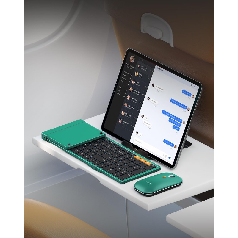 - Multi-Device Keyboard Mouse Set: The wireless folding keyboard and mouse offers seamless connectivity for up to 3 devices (2.4G+BT+BT), you can use your laptop, tablet, and phone simultaneously. Easy switch with a simple press of a button. Compatible with a variety of operating systems including Windows, macOS, Chrome OS, iPadOS, Android, and more