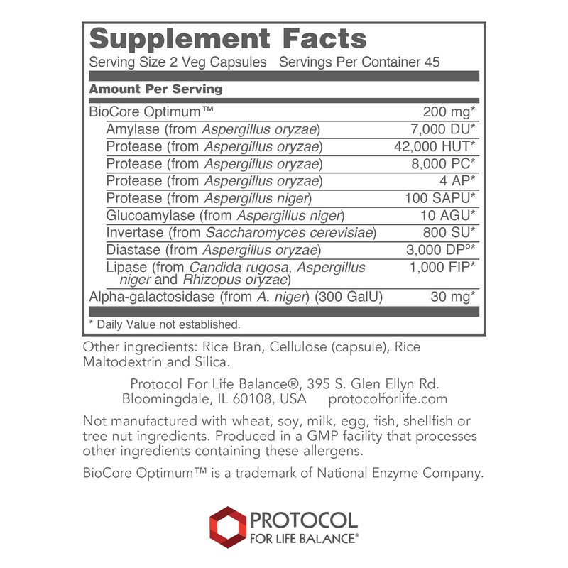 Protocol BioCore Enhanced Enzymes - Digestive Enzymes - Maximum Food Utilization - 90 Veg Caps
