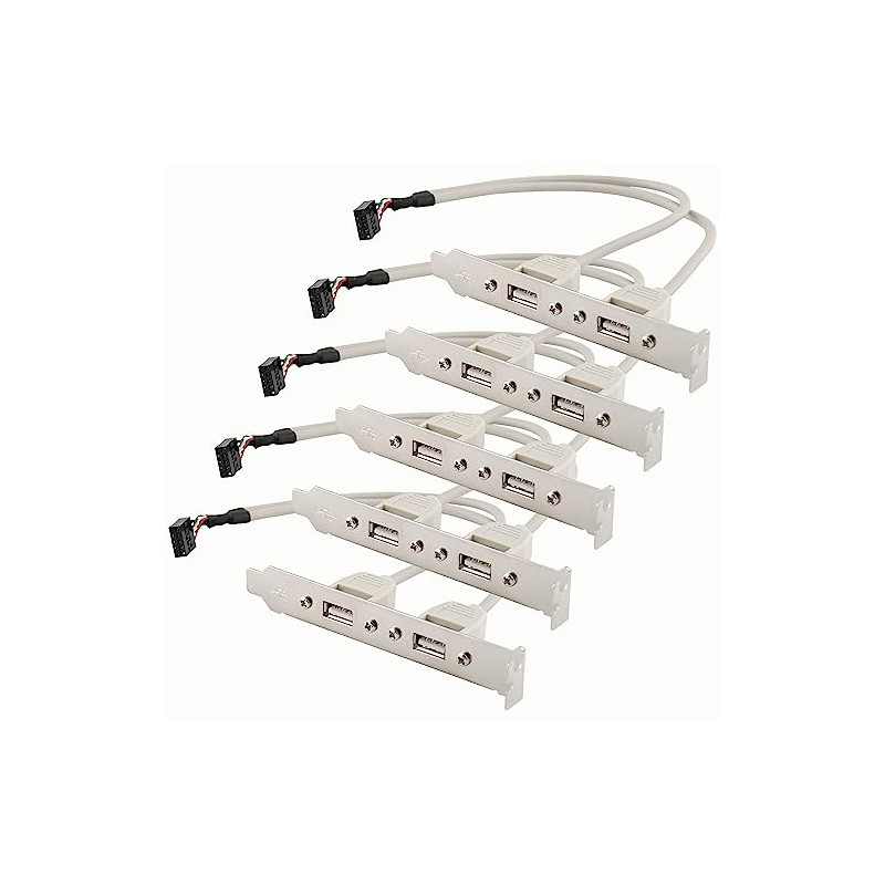 Protronix Motherboard Cable to 2-Port USB 2.0 Rear Panel Bracket Host Adapter (5-Pack)