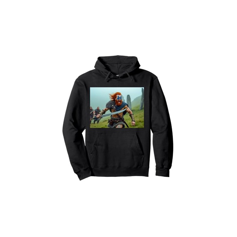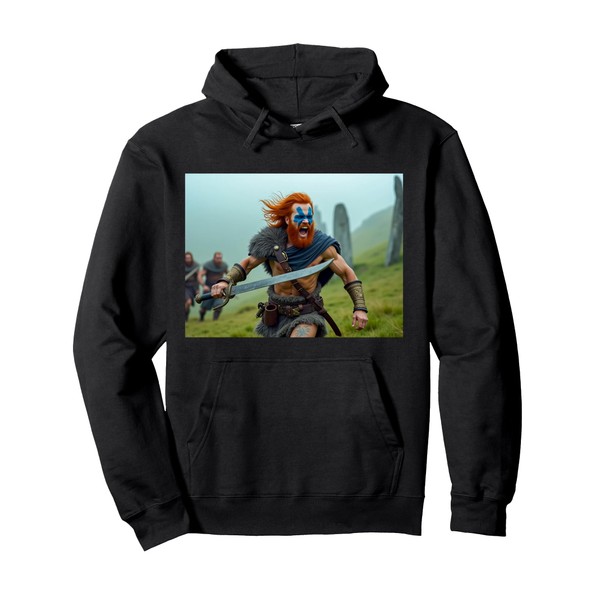 Proud Highlander stands defiant over misty Scottish hills Pullover Hoodie