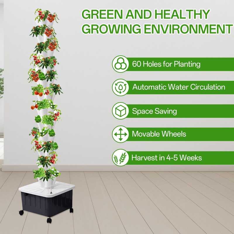 60 Pot Vertical Hydroponics Tower Systems Set Hydroponic Growing Kit Garden Home