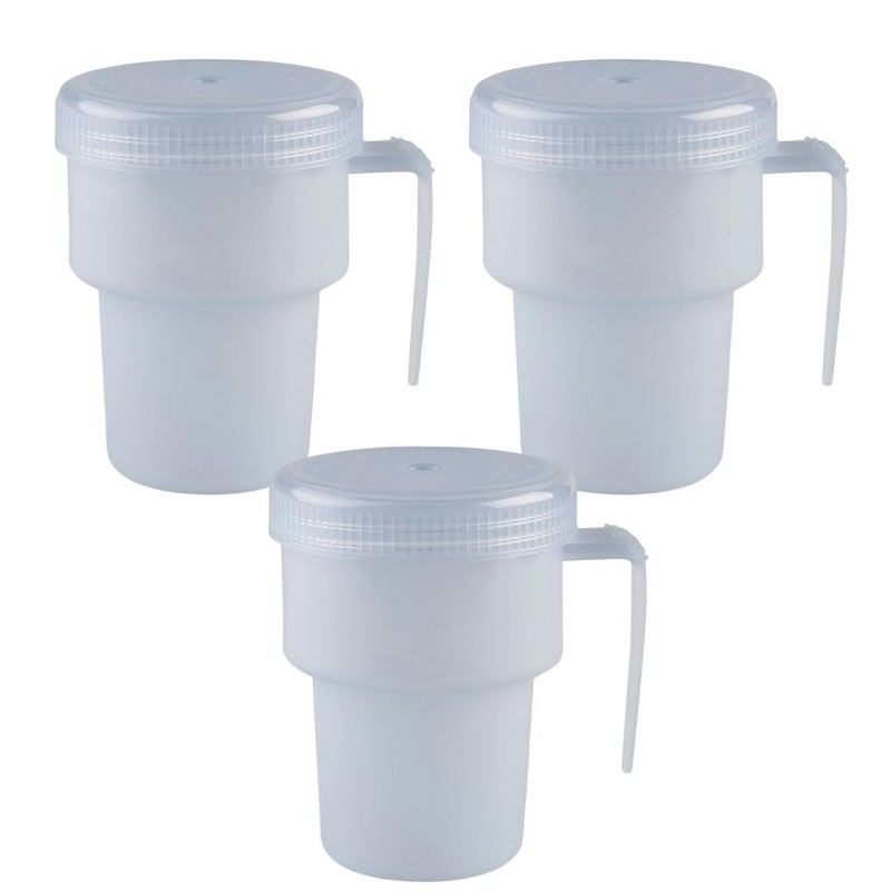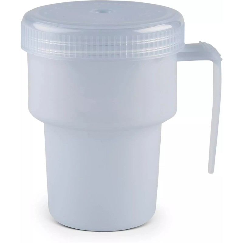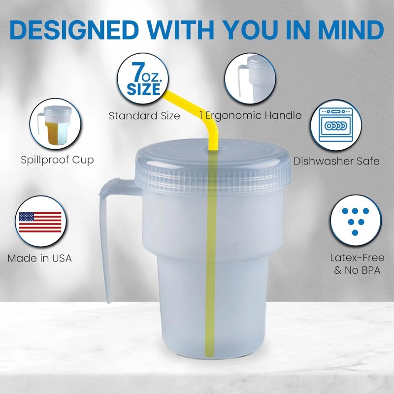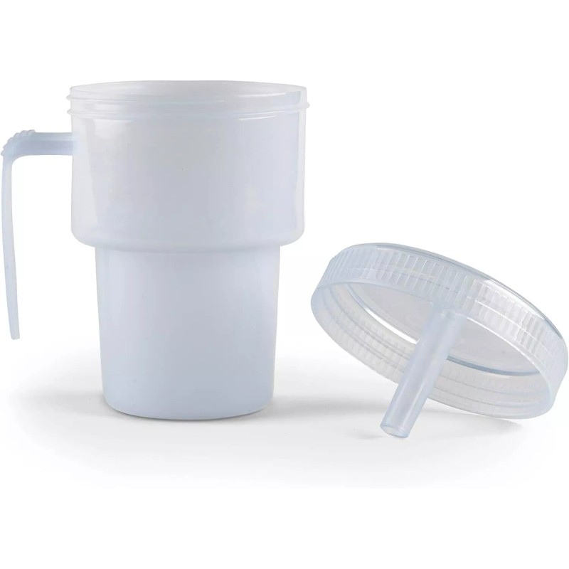 Providence Spillproof Kennedy Cup - 7 oz. - Is a lightweight spillproof drinking cup that is ideal for people of all ages. The patented design allows the cup to be easily filled with up to 7 ounces of warm or cold liquid. Once the lid is screwed on the liquid will not spill out even if the cup is turned completely upside down! This means an end to messy spills and new independence to those who have difficulty using conventional cups. Not recommended for microwave use. Made in USA. BPA Free. Latex Free.