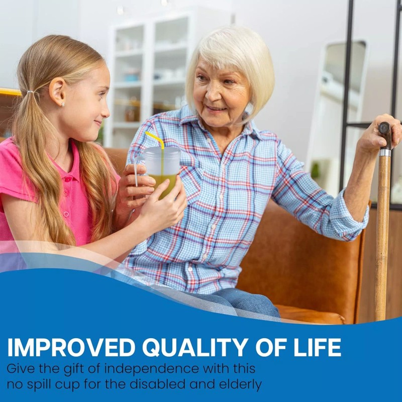 Indications: For any age, where dropping or spilling drinks are an issue, prevents potential messy spills.