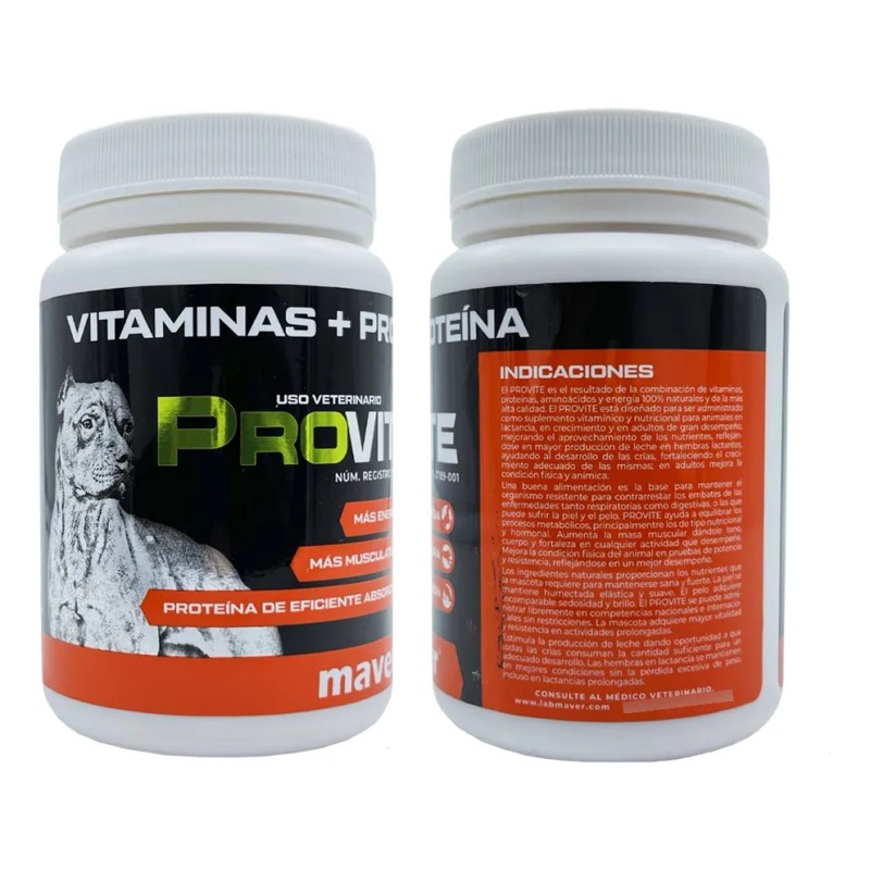 PROVITE es el resultado de una combinación de vitaminas, proteínas, aminoácidos y energia 100% naturales y de la más alta calidad. El PROVITE está diseñado para ser administrado como suplemento vitamínico y nutricional para animales en lactancia, en crecimiento y en adultos de gran desempeño.