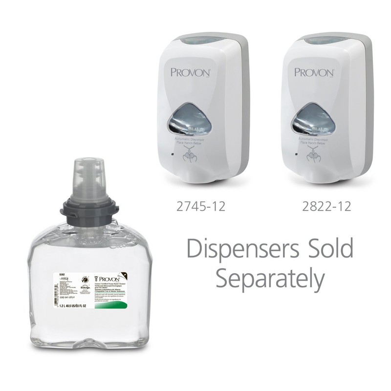 - Price For: Each Package Type: Hands Free Dispenser Item: Foam Soap Refill Green Certification or Other Recognition: Green Seal Certified Color: Gray Fragrance: Unscented Uses Dispenser: Mfr. No. 2745-12 Size: 1200mL Formula: Provon Standards: ADA, UL, CE Country of Origin (subject to change): United States