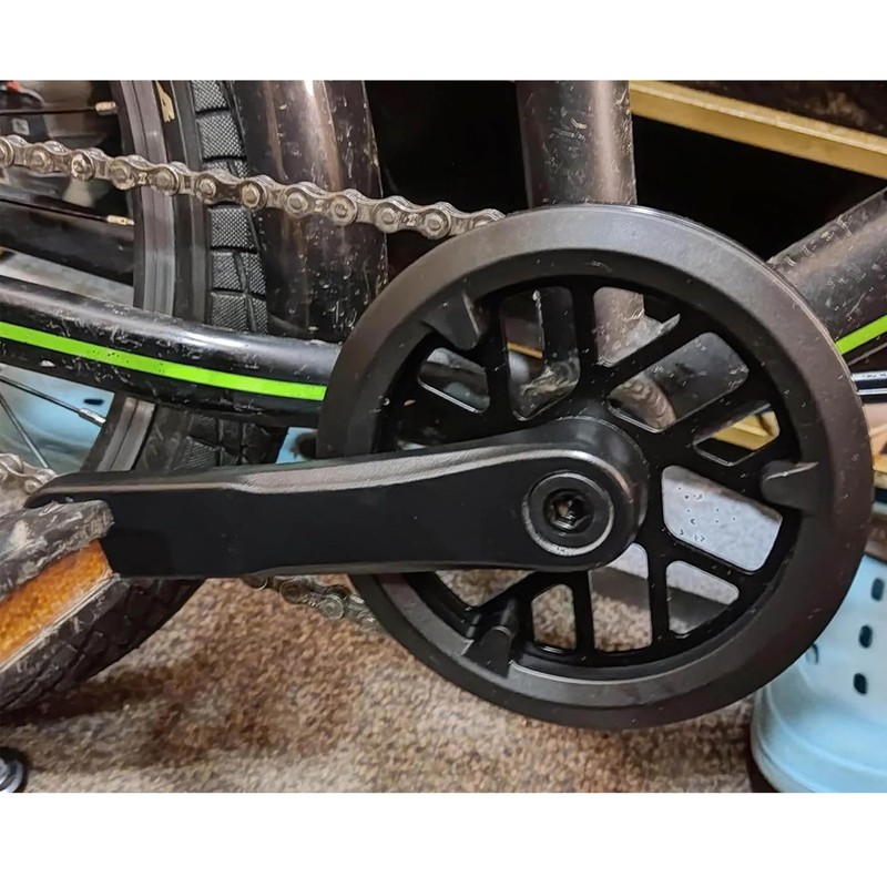 - 【MATERIAL】This crank arm is made of forged aluminum alloy 6061-T6,chainring:32T ALLOY OR STEEL, OTHER STEEL, which is of high strength and durable.Crank finish is SAND BLACK,Chainring Finish is Black.Chainguard is plastic black.