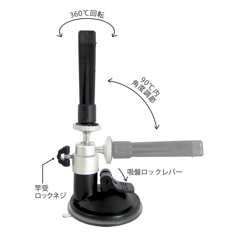 - Material: (body) Aluminum/ABS; (suction cup) PVC; (rod holder) Nylon