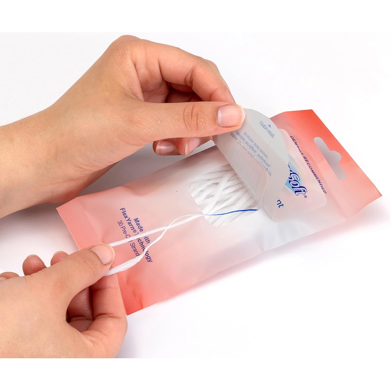 TIP FOR BETTER FLOSSING: Instead of pushing and pulling the soft yarn brush thread back and forth, just insert in one side then pull out on the other side in one motion to evacuate debris and bacteria that cause plaque and other tooth and gum diseases. With this method, you avoid pushing back and redistributing unwanted particles.