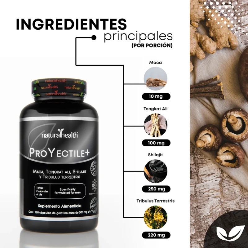 Descubre el poder de ProYectile+ con este exclusivo kit que incluye 120 cápsulas y 2 carteras de 10 cápsulas de Missile Natural Health. Este suplemento energizante está diseñado para adultos mayores de 18 años, combinando ingredientes naturales como Maca y Horny Goat, conocidos por sus propiedades revitalizantes. Cada porción de 2 g es libre de gluten y lactosa, lo que lo convierte en una opción adecuada para quienes buscan un estilo de vida saludable. Su formato en cápsulas facilita la ingesta diaria, recomendándose 2 cápsulas de ProYectile+ y 1 de Missile al día. Este producto no es un medicamento, y su uso es responsabilidad del consumidor. Con un peso neto de 300 g, este kit es ideal para quienes desean potenciar su energía y bienestar de manera natural. ¡Atrévete a experimentar sus beneficios!
