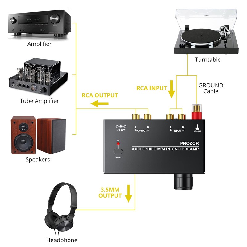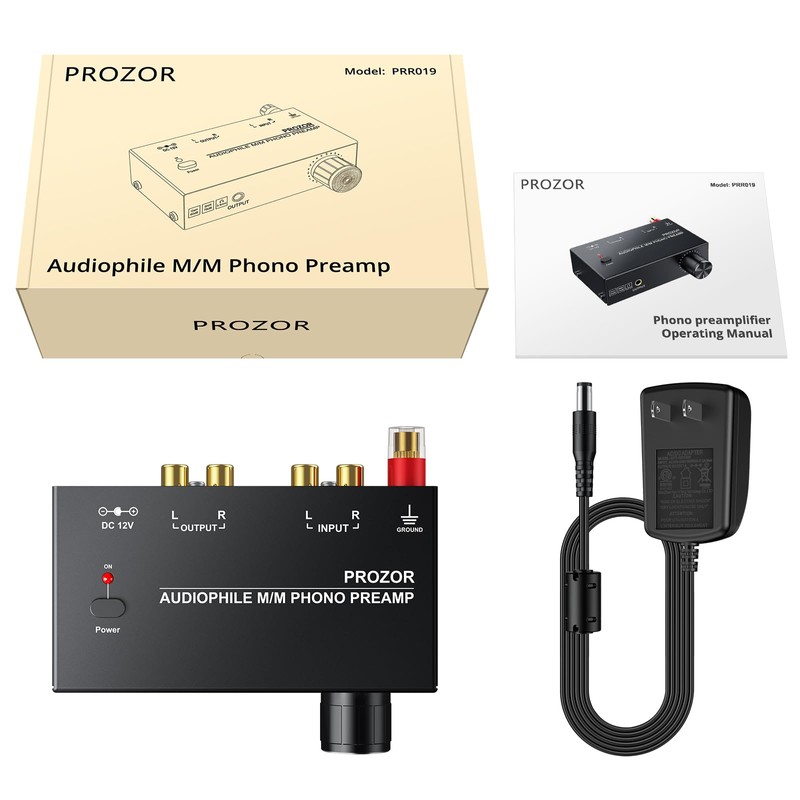 PROZOR Pre Amplifier for Turntable Audiophile M/M Phono preamp with Level Volume Controls with RCA Input, RCA/3.5MM Output interfaces, Low Noise Operation Including 12V 1A Power Adapter