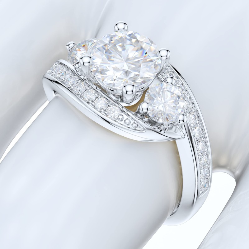 PRSTANI Sterling Silver Fancy Split Three Stone Style Simulated Round Brilliant Cut Diamond Promise Engagement Ring (4.5)