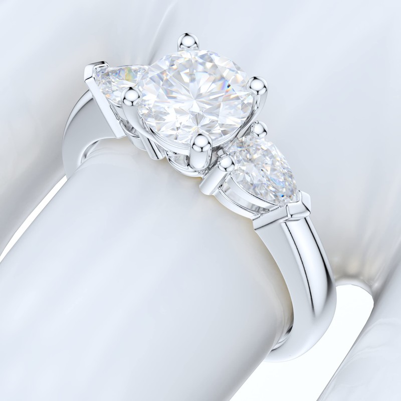 PRSTANI Sterling Silver Three Stone 1CT Simulated Round Brilliant Cut And Pearl Shape Diamond Promise Engagement Ring (6)