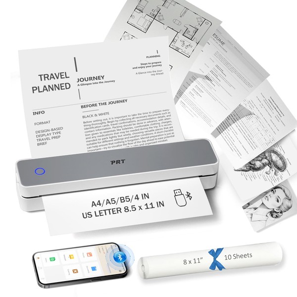 PRT Inkless Portable Printer for Travel, Wireless Thermal Printer Support 8.5...