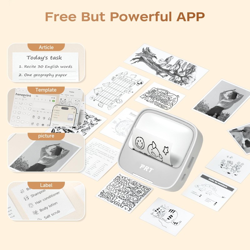 • Portable Thermal Printer: This mini printer uses thermal printing technology, does not require ink,and has clear printing effects. This sticker printer supports the snap-and-print function, which can quickly print out the captured content to improve learning and work efficiency.