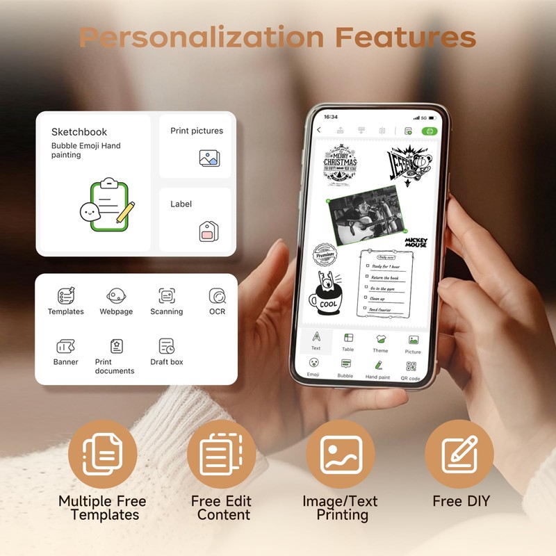 This portable thermal printer uses thermal printing technology, does not require ink,and has clear printing effects. This sticker printer supports the snap-and-print function.Label printer for study notes,lists,pictures,DIY creations