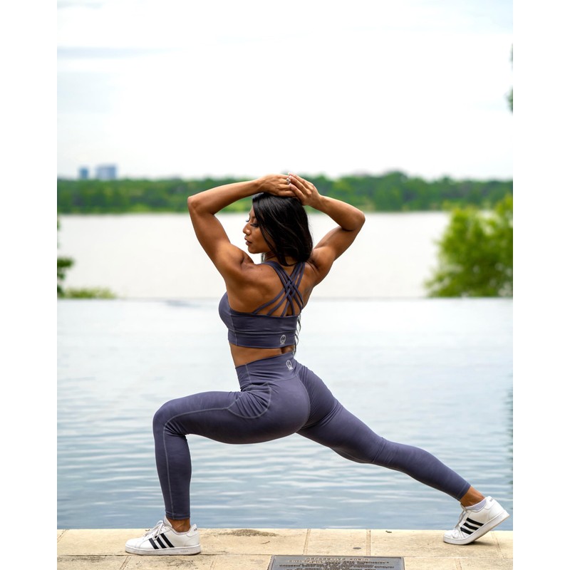 PRUMATT Women's Super Soft Premium Sports Bra, Criss-Cross Back, Medium Impact, Padded, Removable Cups, Everyday Bra for Yoga, Gym, Workout (Purple Camo)