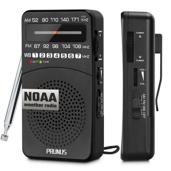 PRUNUS NOAA Weather Radio AM FM, Battery Powered Radio by AA, Transistor Radios, Earphone Jack, Portable Radio AM FM WB for Emergency, Hurricane, Floods, snowstorms