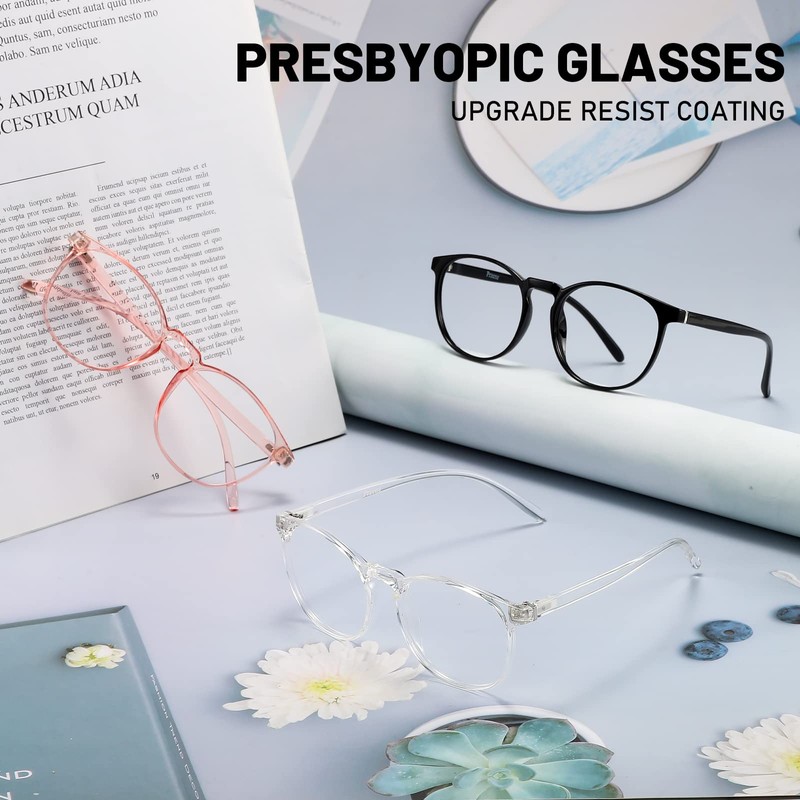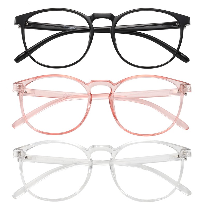 Przene Paquete de 3 Gafas de Bloqueo de Luz Azul para Mujeres/Hombres, Gafas de Ordenador Redondas Retro, Antitensión Ocular/Uv/Deslumbramiento, Gafas para Juegos. Estándar Negro/Cristal/Rosa