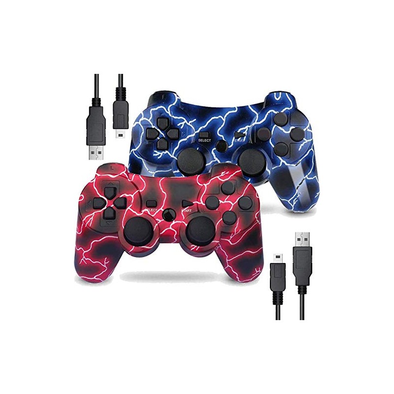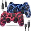 PS3 Controller 2 Pack Wireless Motion Sense Dual Vibration Upgraded Gaming Controller for Sony Play Station 3 with Charging Cord (BlueFlash and RedFlash)