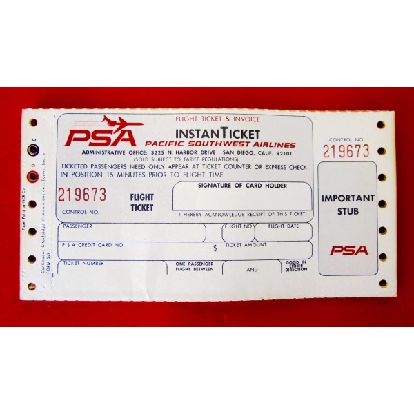 PSA Pacific Southwest Airlines - InstanTicket Flight Ticket & Invoice San Diego
