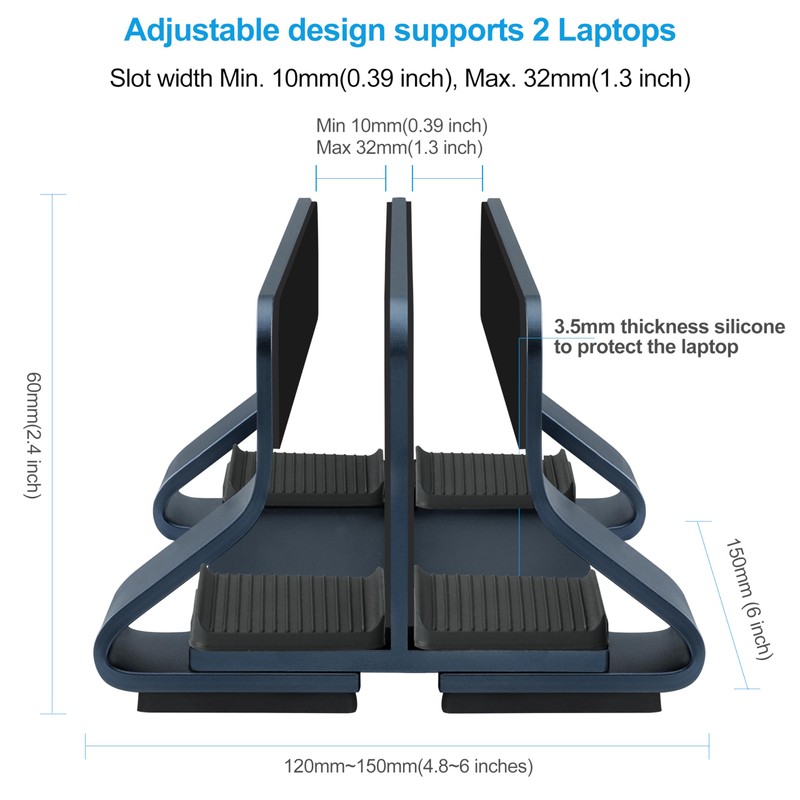 Psitek アルミニウム縦型ノートパソコンスタンドホルダー 2 スロット、省スペース垂直ストレージ すべてのMacBookとノートパソコン用、調整可能なスロット幅 (10-32mm) バージョン 2023