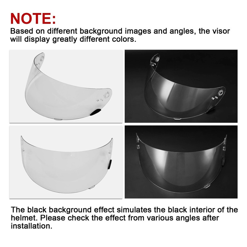 - 【Note】The Qualifier Helmet Visor is made from a single mould and is not specifically custom adjusted for the curvature of the mask for a specific size helmet like the OEM PART, so there may be some gaps/inadequate fitment/noise leakage etc. This is a probabilistic issue and not all helmets will have this problem, please be aware of this!
