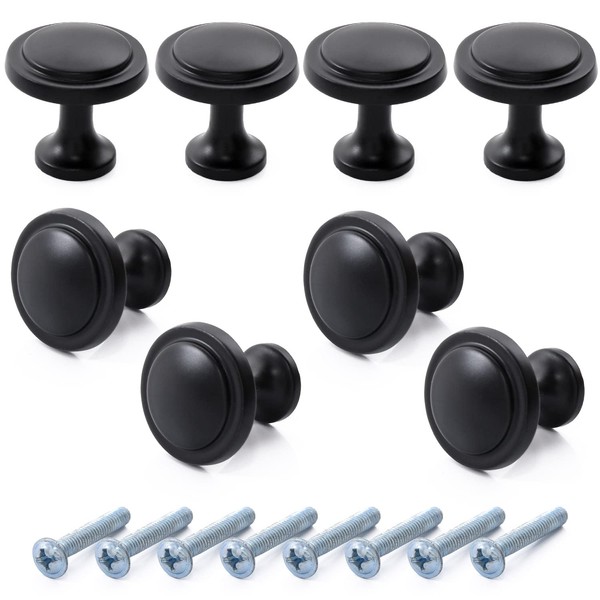 Pstyle. Handle Knob Drawer Hardware Kitchen 1.0 x 0.9 inches (25 x 23 mm), Set of 8 (PST-105) (Black)