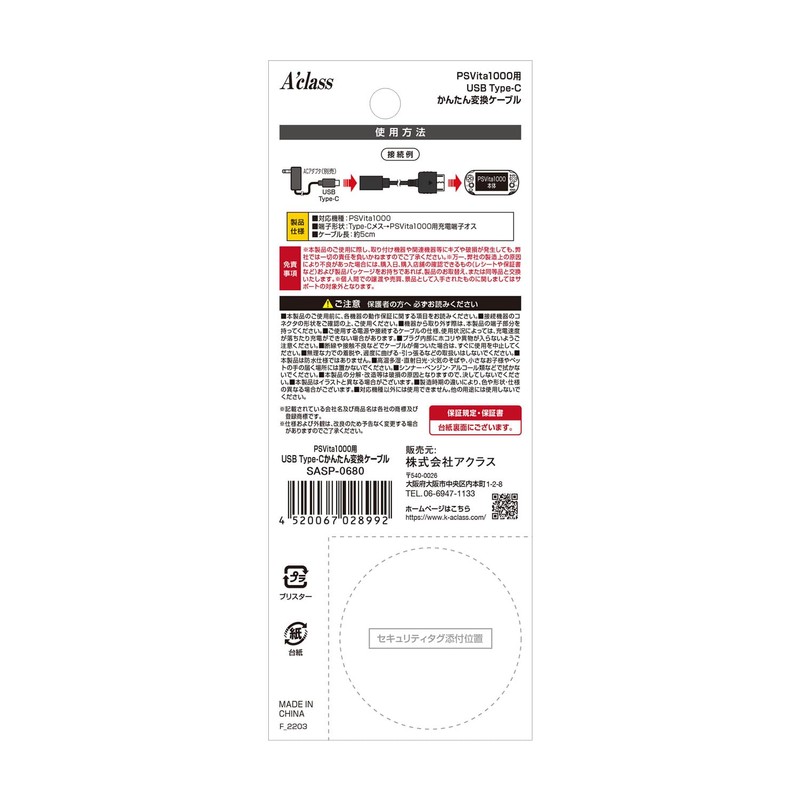 PSVita用 USB Type-C かんたん変換ケーブル