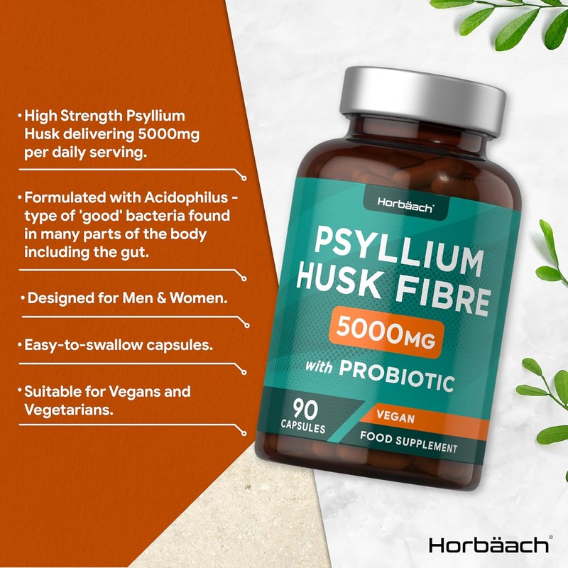 Horbaach Psyllium Husk Complex: Step up your daily nutrition with Horbaach Psyllium Husk. This innovative formula delivers a high 5000mg of Psyllium Husk plus 2 Million CFU Lactobacillus Acidophilus per daily dose. Whether you prefer capsules or powder, our supplement fits seamlessly into your daily routine. Simply take it with water or mix it into your favourite drink or recipe.