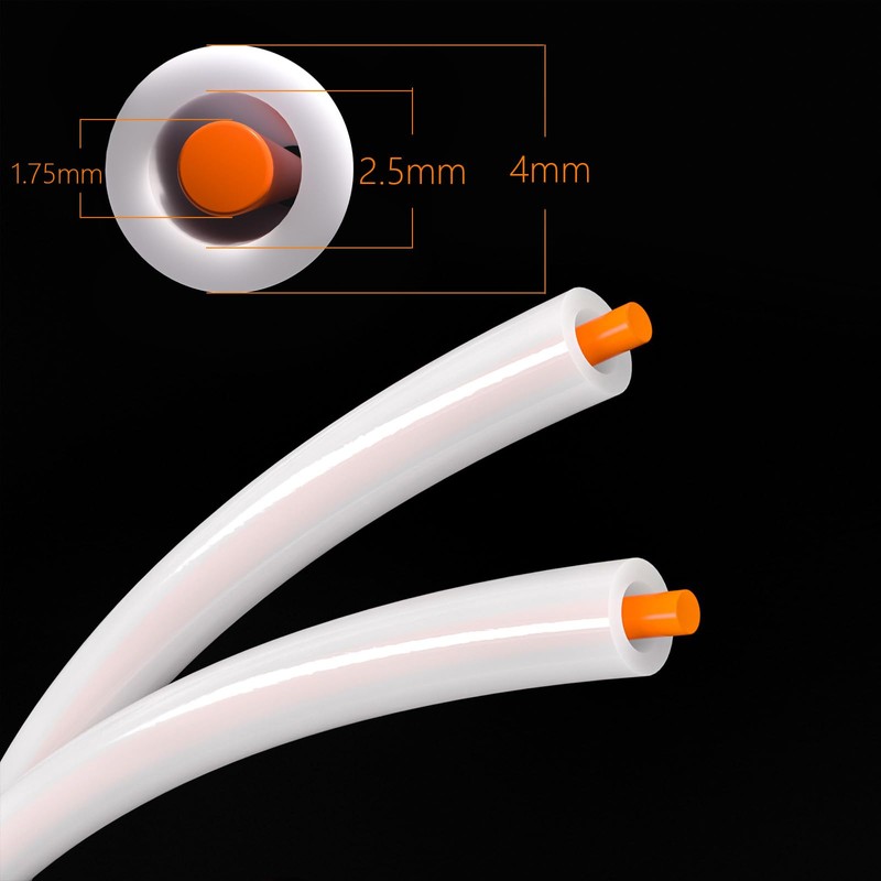- Wide Compatibility: PTFE tubing (2.5mm ID × 4mm OD) is perfect for 3D printers with direct-drive extrusion systems that use 1.75mm filament. Compatible with Bambu Lab X1/X1C/A1/A1mini/P1P/P1S/A1/A1 Mini/P1/X1 series, Compatible with Creality Ender3 V3/K1/K1 Max, for 3D printers with direct-drive extruders, and more......
