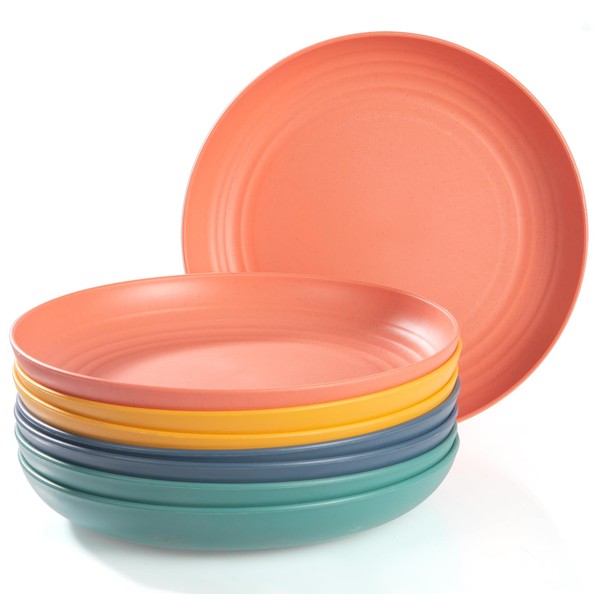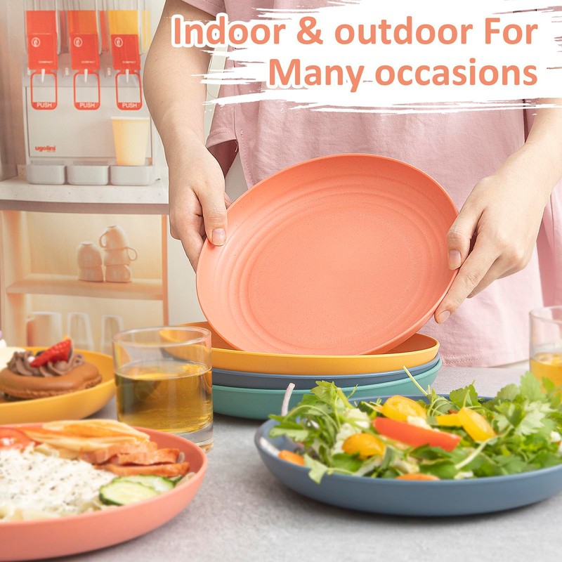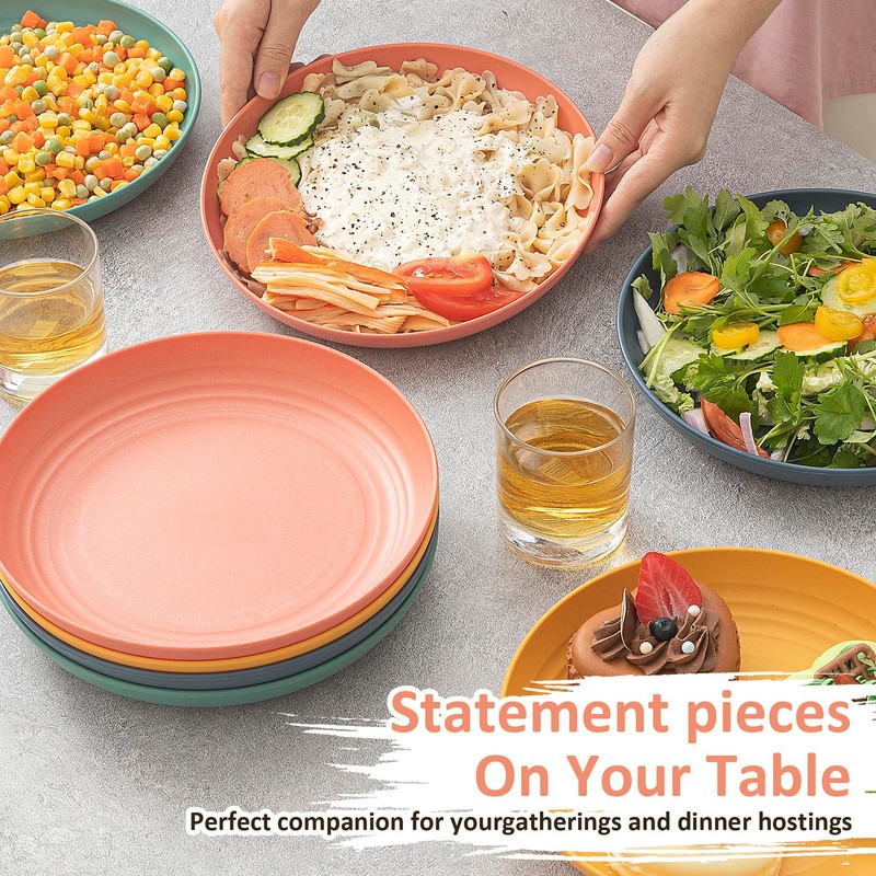 - REUSABLE & COLORFUL: This set comprises 8 wheat straw plates available in 4 vibrant colors , with 2 plates for each color. The harmonious combination of these colors can effectively improve your mood. With a generous capacity of 10 inches, these plates provide ample space to accommodate family dinners or gatherings