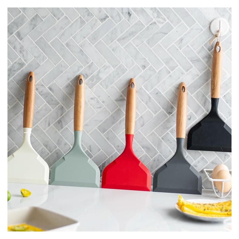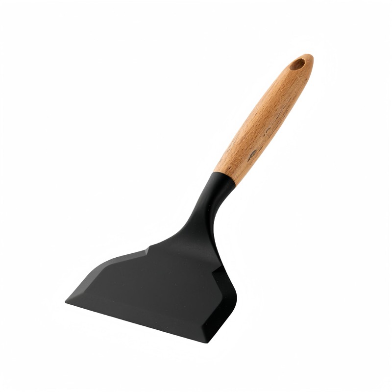 PTOFEQMKJ Kitchen Silicone Spatula Cooking Spatula with Wooden Handle (black)