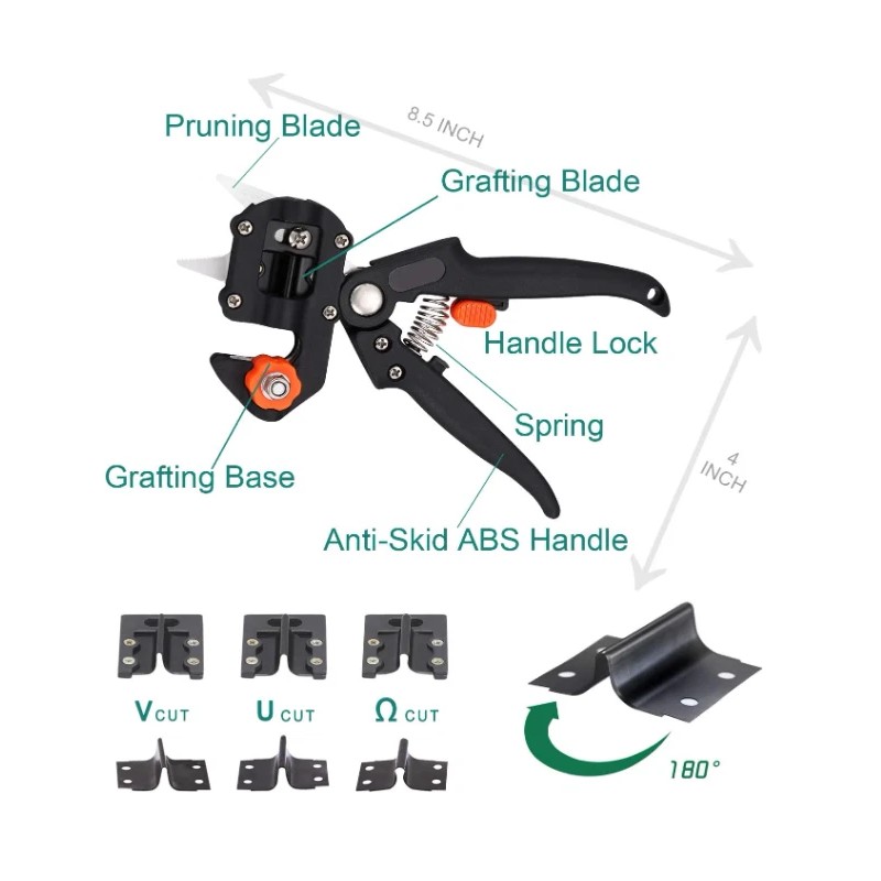 【2 IN 1 GRAFTING PRUNING PLIERS】Made of JANPANESE SK5 high carbon steel double-edged shear blade and high-strength ABS plastic handle.