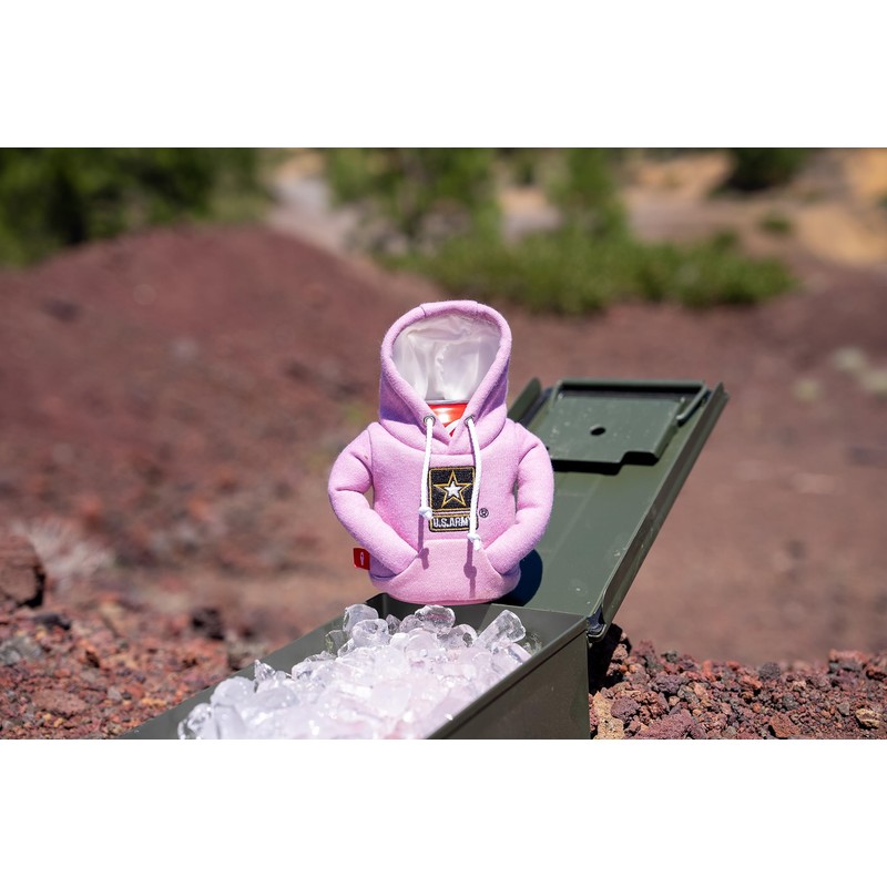 Puffin - The Hoodie Beverage Jacket, Insulated Can Cooler, U.S. Army Rose/White