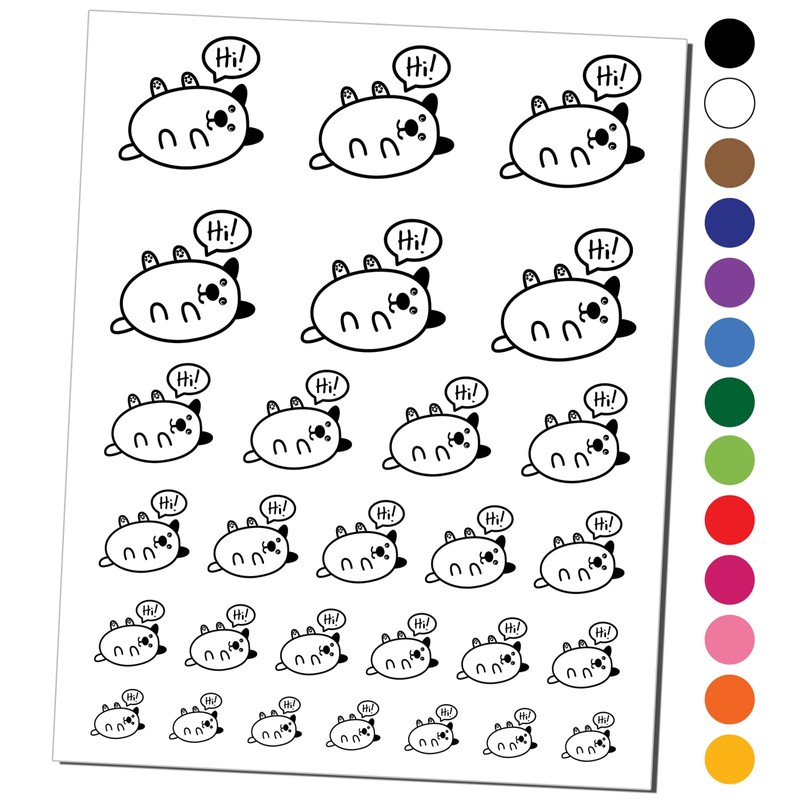 Pug Dog Hi Hello Doodle Rub My Tummy Temporary Tattoo Water Resistant Fake Body Art Set Collection - Red (One Sheet)