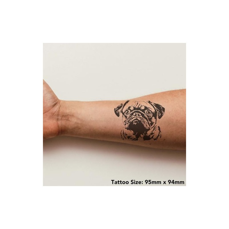 'Pug Portrait' Temporary Tattoo - Water Resistant, Skin-Safe, Non-Toxic Transfer (TO00082769)
