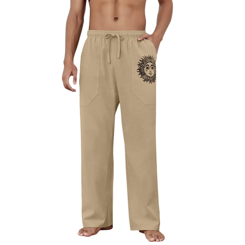 Puimentiua Cotton Linen Pants Men, Summer Beach Pants Loose Fit with Elastic Waist Drawstring Coffee