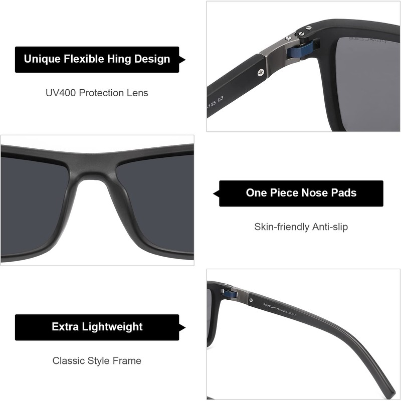 PUKCLAR Polarized Sunglasses for Men Lightweight TR90 Frame UV400 Protection Square Sun Glasses