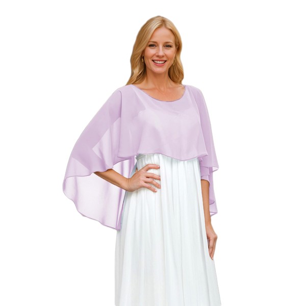 Pukguro Sheer Shawls and Wraps for Evening Dresses Chiffon Capes for Women Soft Wedding Cover Up Lavender