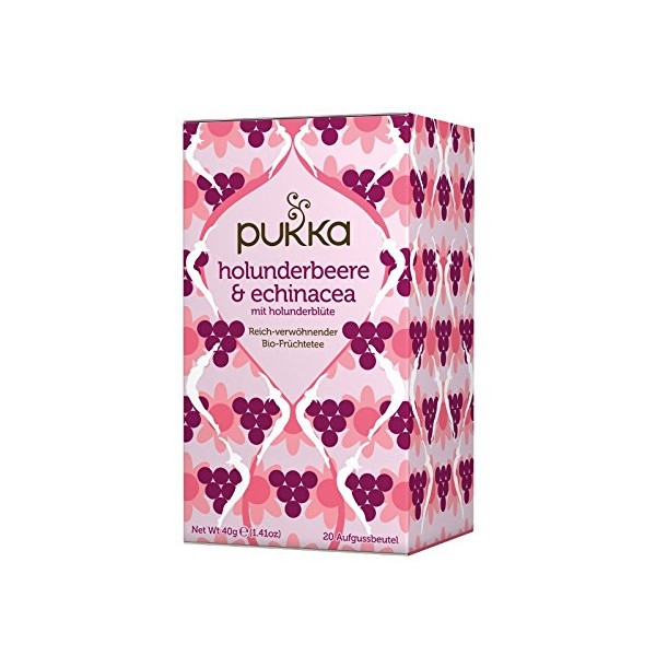 PUKKA Bio Holunderbeere & Echinacea Tee, 1er Pack (20 x 2,0 g Teebeutel) - BIO