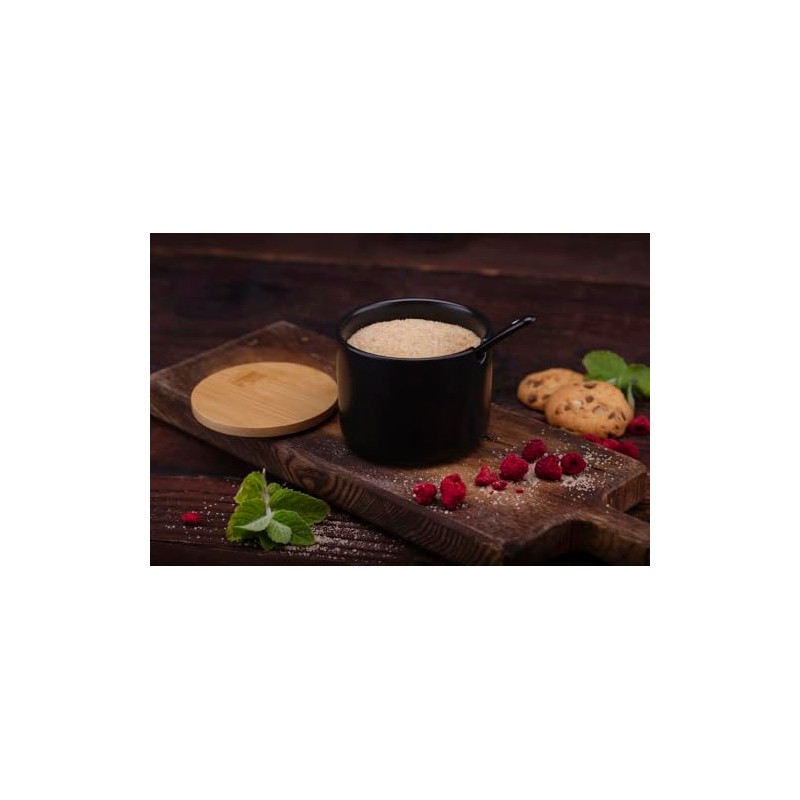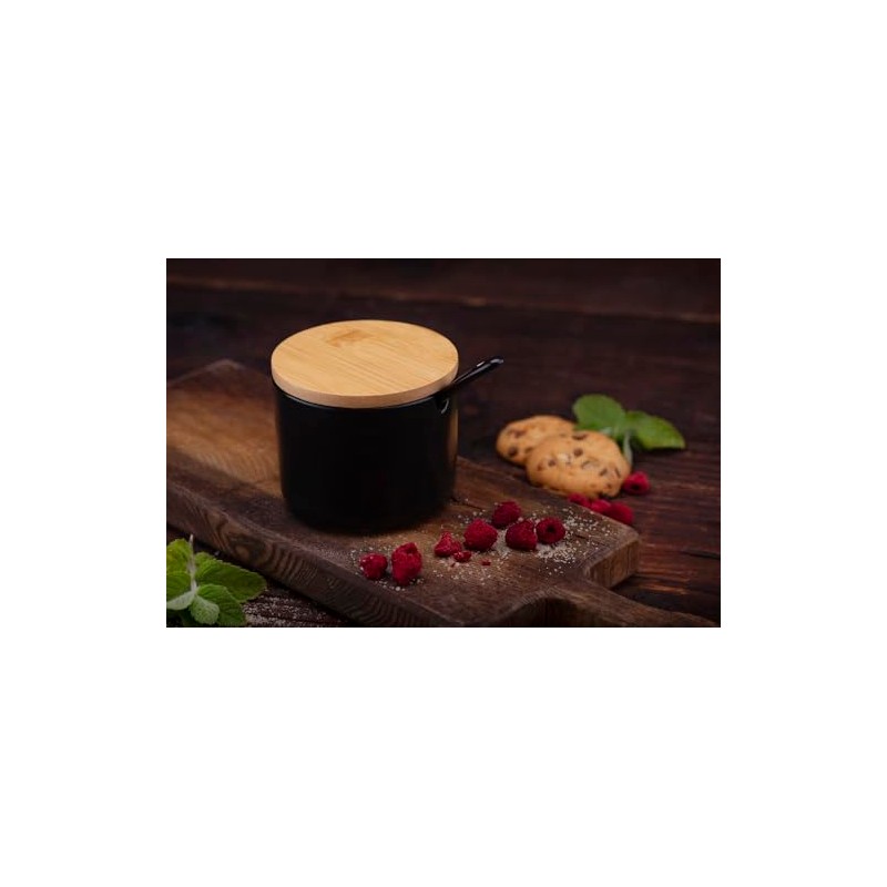 Pullmer Ceramic Sugar Bowl with Bamboo Lid and Sugar Spoon, Sugar Container (Ronnie Black)