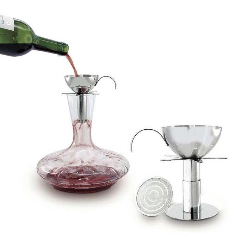 - Der Trichter ist ausgestattet mit Spezial Filter – hält evenyuali Ablagerungen und hilft die Sauerstoffzufuhr des Weines